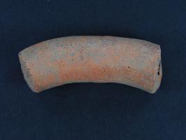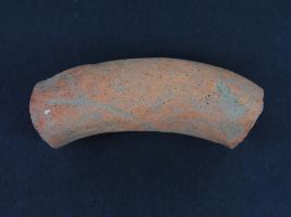 | Description / विवरण | It s a handle made of terracotta. It is not well fired. Its colour is ochred. It is damaged from both sides and a little bent on it. Deposition of dust and dirt. Surface is rough and flaking on it. |