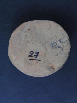 | Description / विवरण | It s a Handle of a lid made of terracotta and done in round shape. Surface is raised on both sides but well fired. Margin is badly damaged and upper surface is some flat. There are some cut marks on it and the object losing its original colour. |