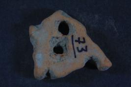 | Description / विवरण | It s a piece of perforated jar made by baked clay. All sides are damaged and surface are rough. Colour is ochre. |