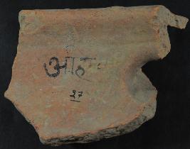 | Description / विवरण | It is fragment of Rim made of terracotta. Colour is ochre and not well fired. Broken from all sides. Surface is rough. Incise lines on its surface. Chipping on it. |