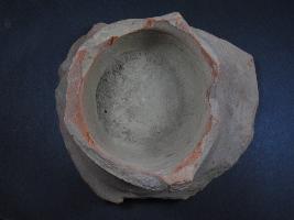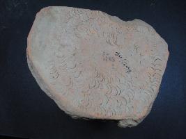 | Description / विवरण | It is a broken fragment of a stand made of terracotta was found in Banawali trench no.ZA4, layer no.1. It is well fired and color is red. It has some cut marks and flaking on its surface. It is a wheel made pottery. Its half part is missing. Its inner side carved by incised design. |