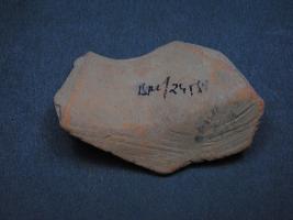 | Description / विवरण | It is a broken fragment of a pot made of terracotta was found in Banawali trench no. YD2, layer no.1. It is well fired and color is red. Its outer side is carved by cut marks and flaking. It is a wheel made pottery. |
