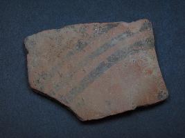 | Description / विवरण | It is a broken fragment of a pot made of terracotta was found in Banawali trench no. ZA4, layer no.6. It is well fired and color is red. It has some cut marks and flaking on its surface. It is a wheel made pottery. Its outer side carved by black slip design. |