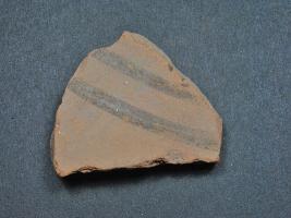 | Description / विवरण | It is a broken fragment of a pot made of terracotta was found in Banawali trench no. ZC1, layer no.1. It is well fired and color is red. It has some cut marks and flaking on its surface. It is a wheel made pottery. Its outer side carved by black slip design. |