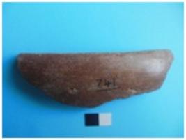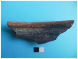 | Description / विवरण | Fragmentary rim of a dish, inside black and outside red, slip on both sides. Medium fabric. Black and red ware. |