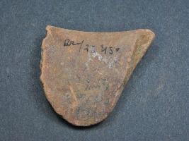 | Description / विवरण | It is a broken rim fragment of a pot made of terracotta was found in Banawali trench no. ZF2, layer no.5. It is well fired and color is red. It has some cut marks and flaking on its surface. It is wheel made pottery. |