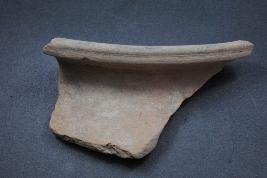 | Description / विवरण | It is a broken rim fragment of a pot made of terracotta was found in Banawali trench no.YB3,layer no.4. It is well fired and colors is red. It has some cut marks and flaking on its surface. It is a wheel made pottery. |