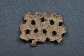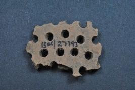 | Description / विवरण | It is a broken fragment of a perforated jar made of terracotta was found in Banawali. It is well fired and colours is red. It has some cut marks and fine holes on its surface. It is wheel made pottery. |