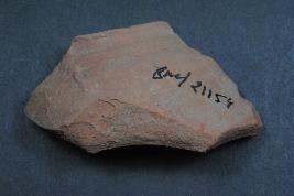 | Description / विवरण | It is a broken fragment of a bowl made of terracotta was found in Banawali trench no. TT1, layer no.15. It is well fired and color is red. It has some cut marks and flaking on its surface . It is wheel made pottery. |