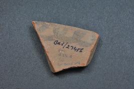 | Description / विवरण | It is a broken rim fragment of a pot made of terracotta was found in Banawali trench no. ZN4, layer no.4. It is well fired and color is red. It has some cut marks and flaking on its surface. It is wheel made pottery. |