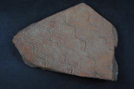 | Description / विवरण | It is a broken fragment of a dish made of terracotta was found in Banawali trench no. ZD 1, layer no. 2. It is well fired and color is red. It has some cut marks on its outer side. Its inner side carved by incised wavy design. |