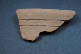 | Description / विवरण | It is a broken rim fragment of a pot made of terracotta was found in Banawali trench no.ZK3,layer no.1. It is well fired and colors is red. It has some cut marks and flaking on its surface. It is a wheel made pottery.Its outer side carved by incised line design. |