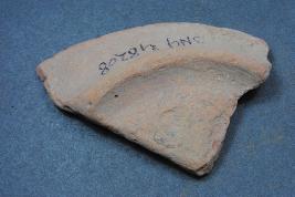 | Description / विवरण | It is a broken fragment of a dish made of terracotta was found in Banawali trench no.ZB3,layer no.5. It is well fired and colors is red. It has some cut marks and flaking on its surface. It is a wheel made pottery. |