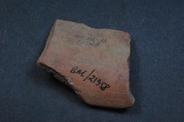 | Description / विवरण | It is a broken fragment of a pot made of terracotta was found in Banawali trench no.YE1, layer no.4. It is well fired and color is red. It has some cut marks and flaking on its surface. It is a wheel made pottery. |