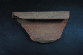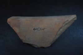| Description / विवरण | It is a broken rim fragment of a pot made of terracotta was found in Banawali trench no. WC3, layer no.1. It is well fired and it s colour is red. It has some flaking all around it. It has carved by incised line with cut marks. |