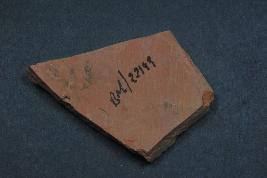 | Description / विवरण | It is a broken fragment of a pot made of terracotta was found in Banawali trench no. ZA2, layer no.2. It is well fired and color is red. It has some cut marks and flaking on its surface. It is wheel made pottery. |