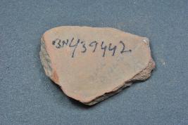 | Description / विवरण | It is a broken fragment of a pot made of terracotta was found in Banawali trench no. ZN2, layer no.2. It is well fired and color is red. It has some cut marks and flaking on its surface. It is wheel made pottery. Its outer side carved by black slip design. |