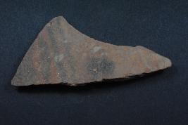 | Description / विवरण | It is a broken fragment of a pot made of terracotta was found in Banawali trench no. YH4, layer no.1. It is well fired and color is red. It has some cut marks and flaking on its surface. It is wheel made pottery. Its outer side carved by black slip design. |