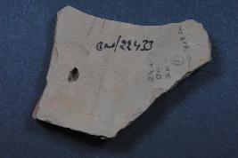 | Description / विवरण | It is a broken fragment of a pot made of terracotta was found in Banawali trench no. ZN4, layer no.1. It is well fired and color is red. It has some cut marks and flaking on its surface. It is wheel made pottery. |