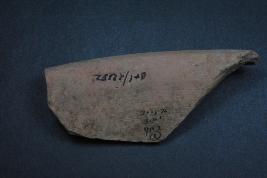 | Description / विवरण | It is a broken rim fragment of a pot made of terracotta was found in Banawali trench no. YN2, layer no.2. It is well fired and color is red. It has some flaking and cut marks on its surface. It is a wheel made pottery. |