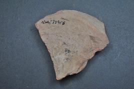 | Description / विवरण | It is a broken fragment of a pot made of terracotta was found in Banawali trench no. ZA1, layer no.3. It is well fired and color is red. It has some cut marks and flaking on its surface. It is wheel made pottery. Its outer side carved by black slip design. |