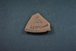 | Description / विवरण | It is a broken rim fragment of a pot made of terracotta was found in Banawali trench no. ZL4, layer no.5. It is well fired and color is red. It has some cut marks and flaking on its surface. It is wheel made pottery. |