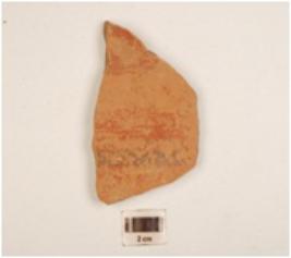 | Description / विवरण | Potsherd of black on red vessel decorated with horizontal band in black pigment on body, fine fabric, well baked and red slip. |