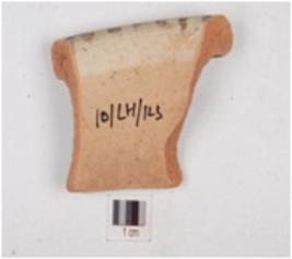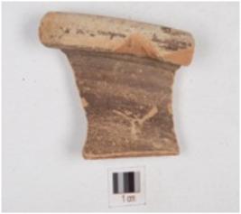 | Description / विवरण | Fragment of rim a buff red ware painted pottery, having out curved rim and vertical strokes on rim. |