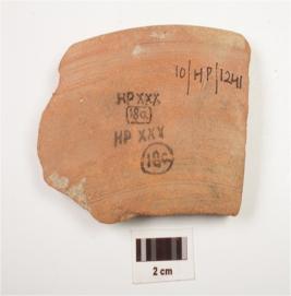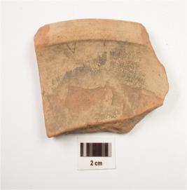 | Description / विवरण | Fragment of a dish of red ware, treated with buff slip on the interior and has a slightly incurved rim. |