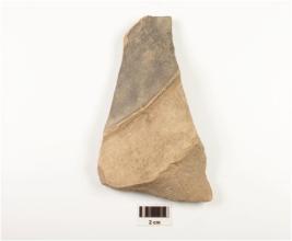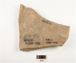 | Description / विवरण | A fragment of handi of buff ware treated with buff slip, ridge at the upper surface and painted with black painting. |