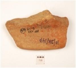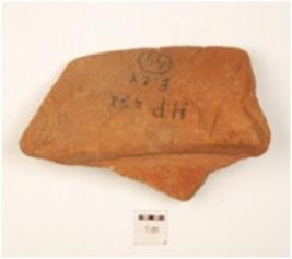 | Description / विवरण | A fragment of red ware basin with obliquelly partly broken, splayed out rim and treated with red slip. |