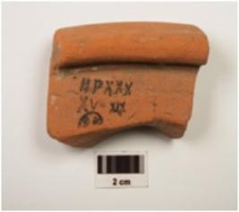 | Description / विवरण | Fragment of a dish of red ware, obliquelly splayed out-turned rim, faded horizontal band painted in black pigment on exterior, traces of red slip, medium fabric and well baked. |