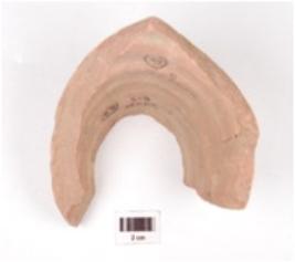 | Description / विवरण | Fragment of a stem of dish on stand of dull red ware, treated with red slip on the exterior and tapering profile. |