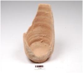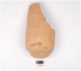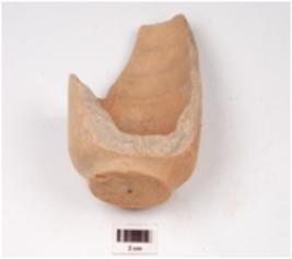 | Description / विवरण | Fragment of a beaker of dull red ware, treated with dull red slip on the exterior, has cylindrical profile and foot base. |