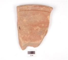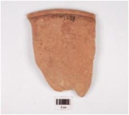 | Description / विवरण | Fragment of a dish of red ware, treated with red slip on both sides has thickened nail headed rim and flaring profile. |