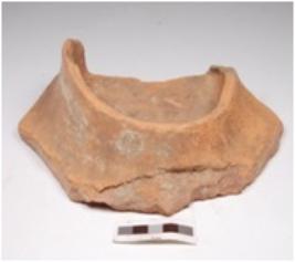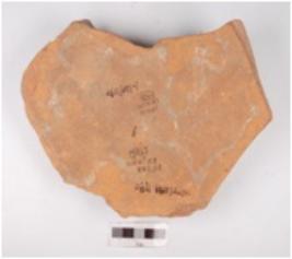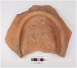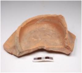 | Description / विवरण | Fragment of dish of red ware, treated with red slip on the both sides and flat bottom. |
