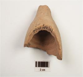 | Description / विवरण | Fragment of miniature goblet of dull red ware with globular body, foot base, medium fabric and well baked. |