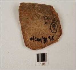 | Description / विवरण | Fragment of a bowl of dull red ware with inverted rim, convex sides and medium fabric. |
