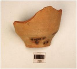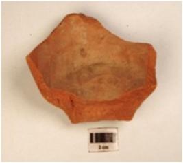 | Description / विवरण | Fragment of a vase of red ware with partly broken discular base, medium fabric and well baked. |