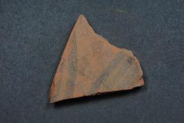 | Description / विवरण | It is a broken fragment of a pot made of terracotta was found in Banawali trench no. ZN3, layer no.6. It is well fired and color is red. It has some cut marks and flaking on its surface. It is a wheel made pottery. Its outer side is carved by black slip design. |