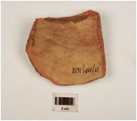 | Description / विवरण | A fragment of red ware vessel, treated with red slip on the exterior. |