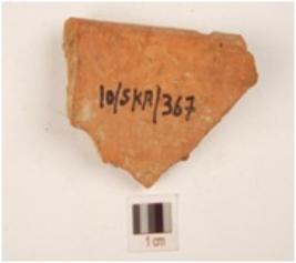 | Description / विवरण | A fragment of miniature vase red ware, out curved rim, well baked, treated with dull red slip and medium fabric. |