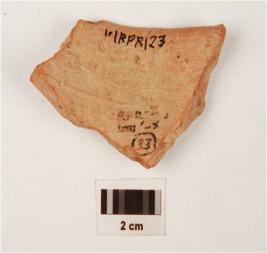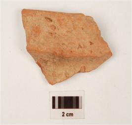 | Description / विवरण | A fragment of vase, of red ware, has feature less rim ridge on neck. |
