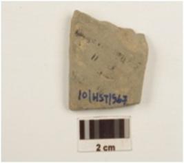 | Description / विवरण | A potsherd of grey ware,painted concentric circles on one side in black pigment,made of fine fabric treated with grey slip. |