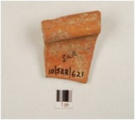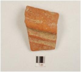 | Description / विवरण | Fragment of a basin of ware treated with red slip on both sides, has incurved thickened rim with two ribs on the exterior and convex profile. |