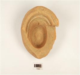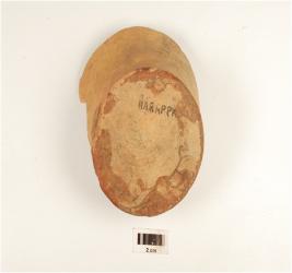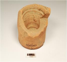 | Description / विवरण | Fragment of elongated vase of dull red ware, treated with red slip on the exterior, tapering profile and flat base. |