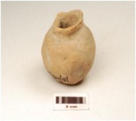 | Description / विवरण | A miniature vase of dull red ware, flaring rim, concave neck, globular profile and rounded base. |