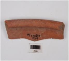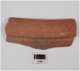 | Description / विवरण | A fragment of red ware basin, having elliptically collared rim and incised line on neck, medium fabric and red slip is given on surface. |