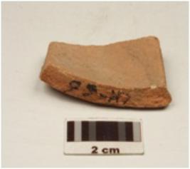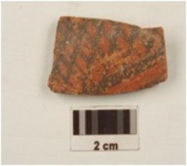 | Description / विवरण | A fragment of pot of red ware , painted with criss-cross desing in black on the exterior of meidum fabric and treated with red slip. |