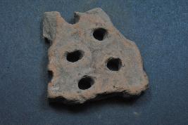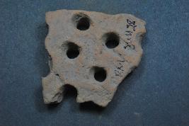 | Description / विवरण | It is a broken fragment of a perforated jar made of terracotta was found in Banawal. It is well fired and color is red. It has some across holes and flaking on its surface. It is a wheel made pottery. |